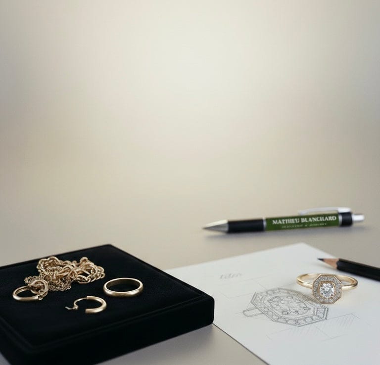 Mathieu Blanchard Jewelry reinvents the art of jewelry with simplicity and elegance. Our house is renowned for its exclusive and customized creations, designed to be worn daily. Guided by ethical values and a deep admiration for nature, we carefully select exceptional materials for each piece of jewelry.