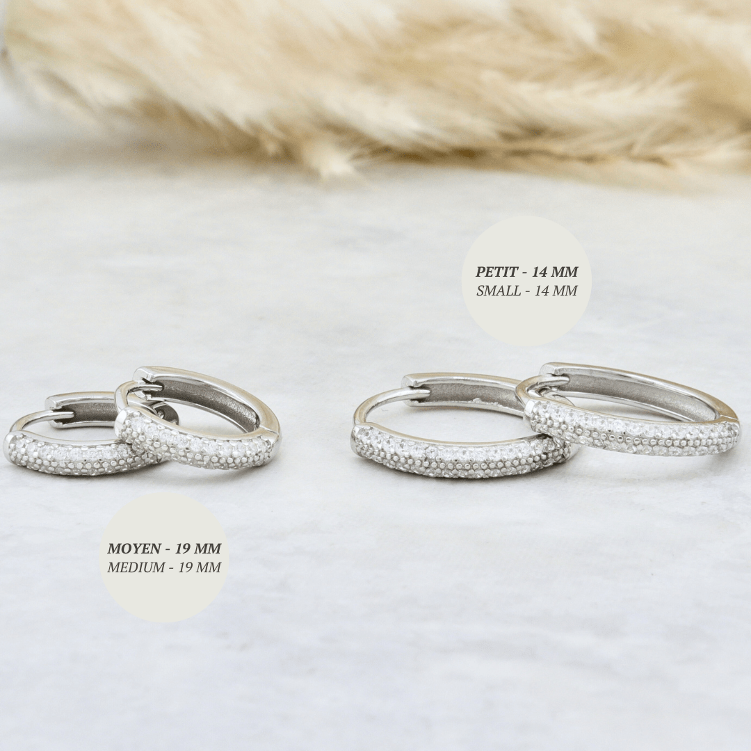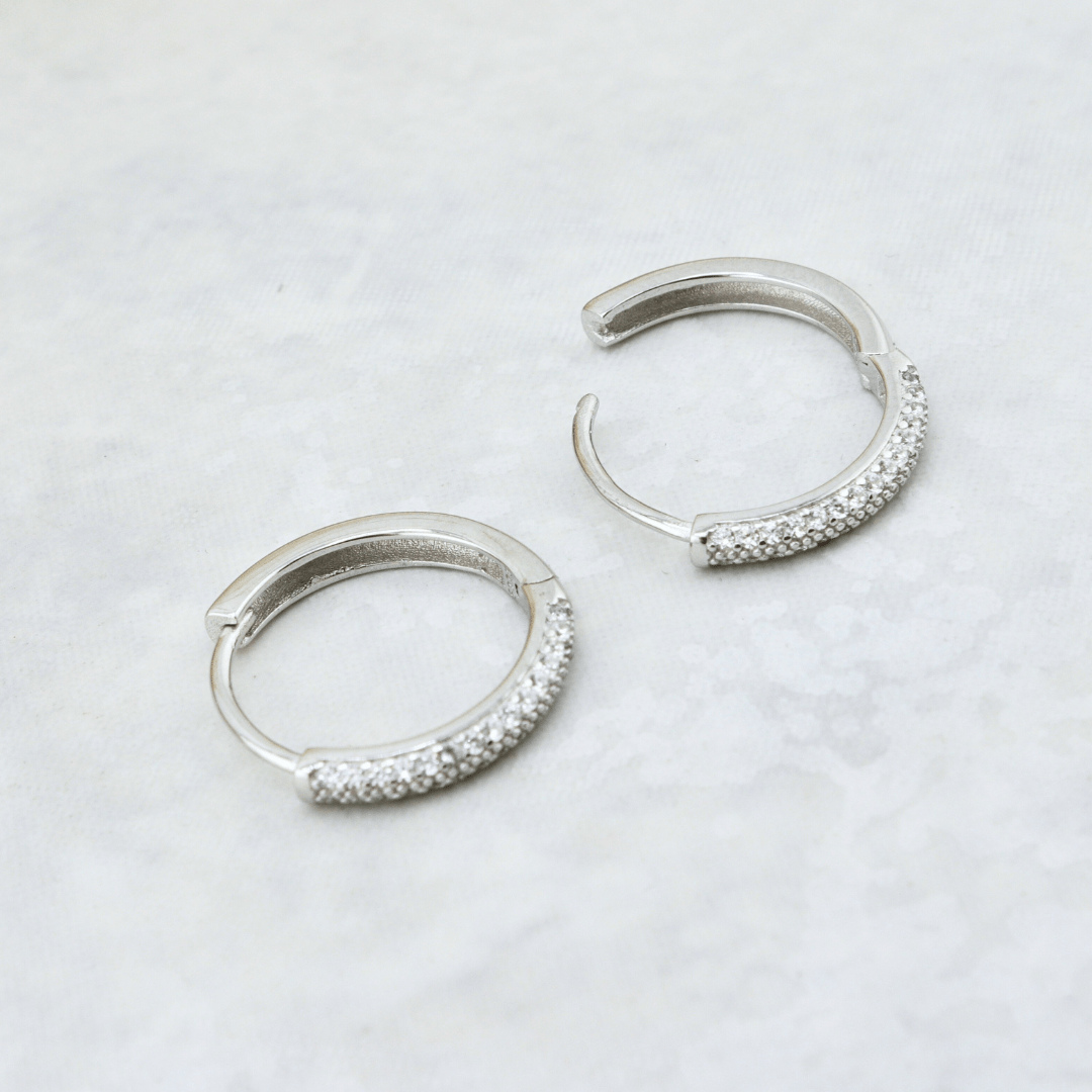 Huggie earrings with cubic zirconia set in 925 sterling silver. They are perfect and comfortable for a child, but also for a teenager or adult.