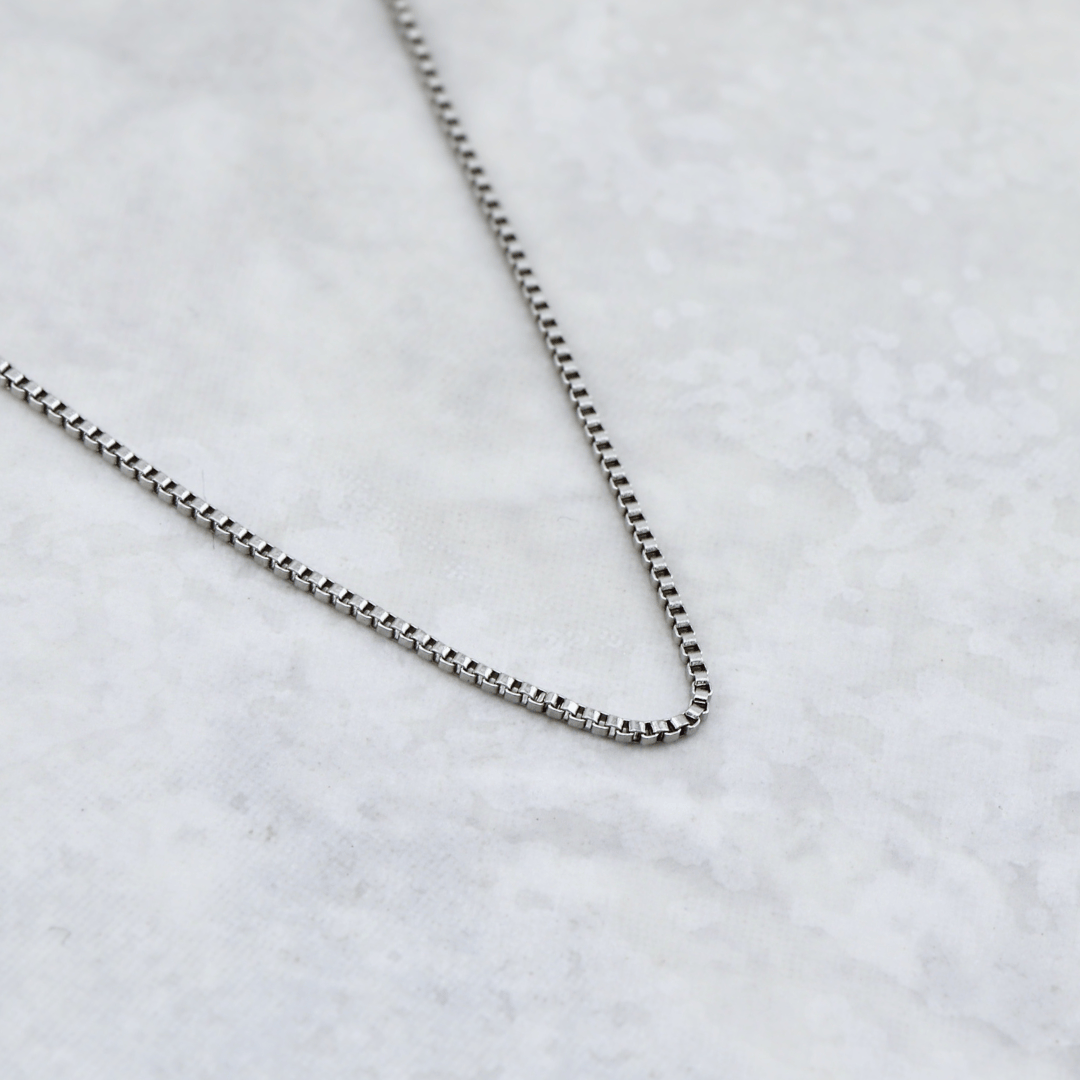 Box chain in stainless steel, slim and understated. A versatile essential, perfect worn alone or layered for everyday style.
